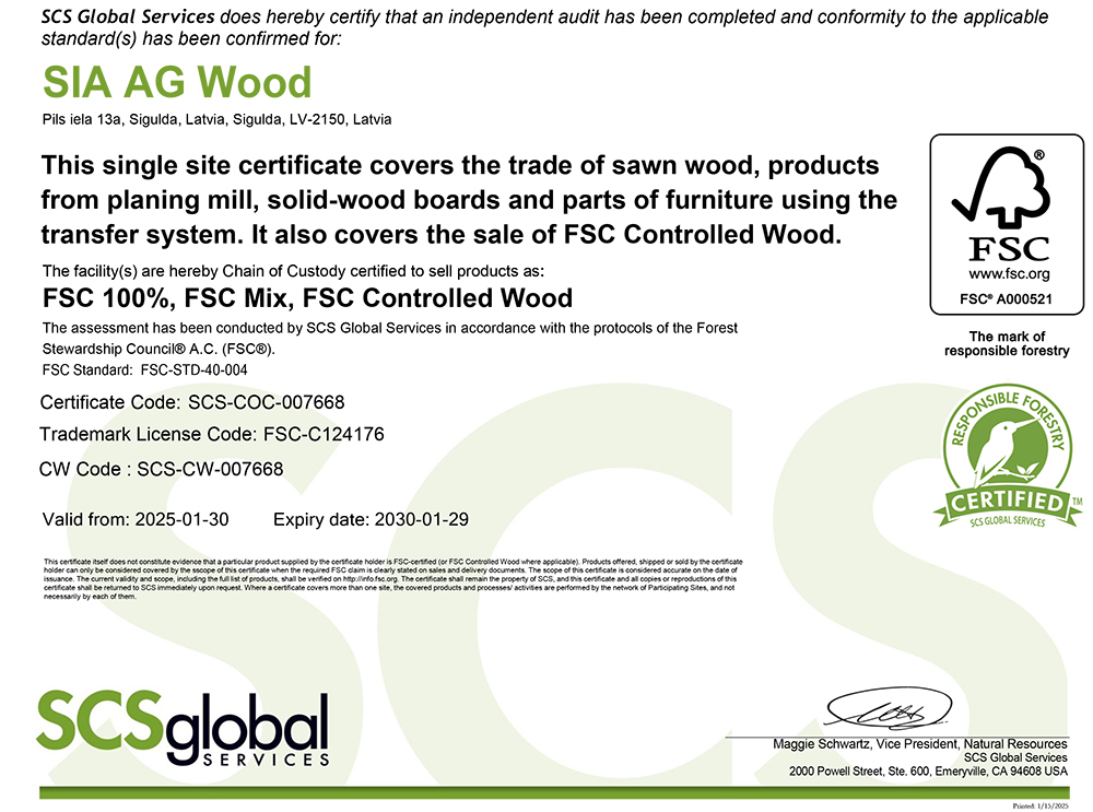 Uzņēmumam ir FSC®sertifikāts SCS-COC-007668